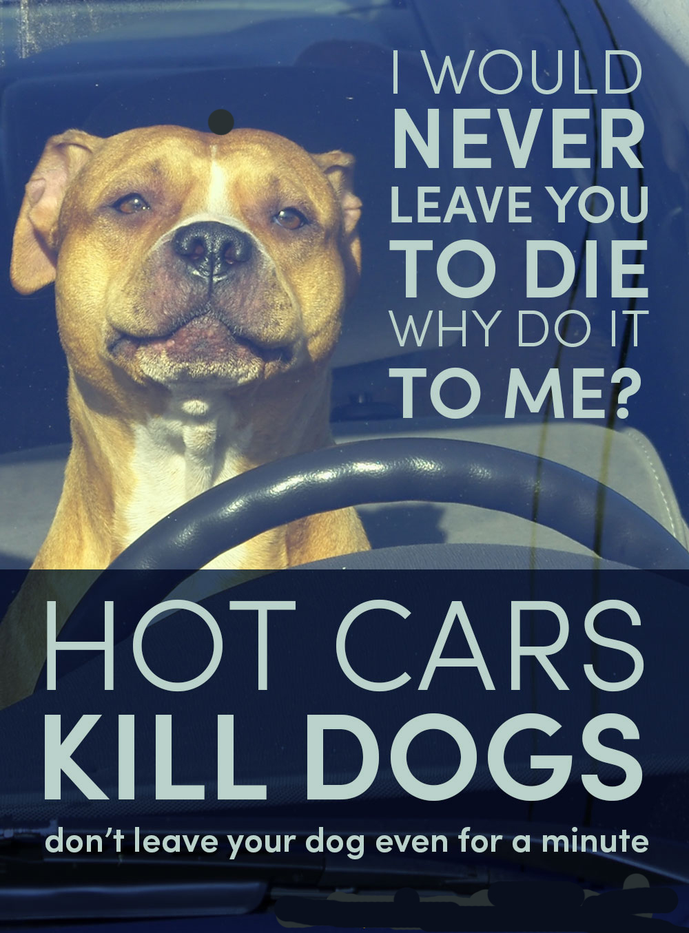 Dogs pant to keep cool. In hot stuffy cars dogs can’t cool down – leaving a window open or a sunshield on windscreens won’t keep your car cool enough .