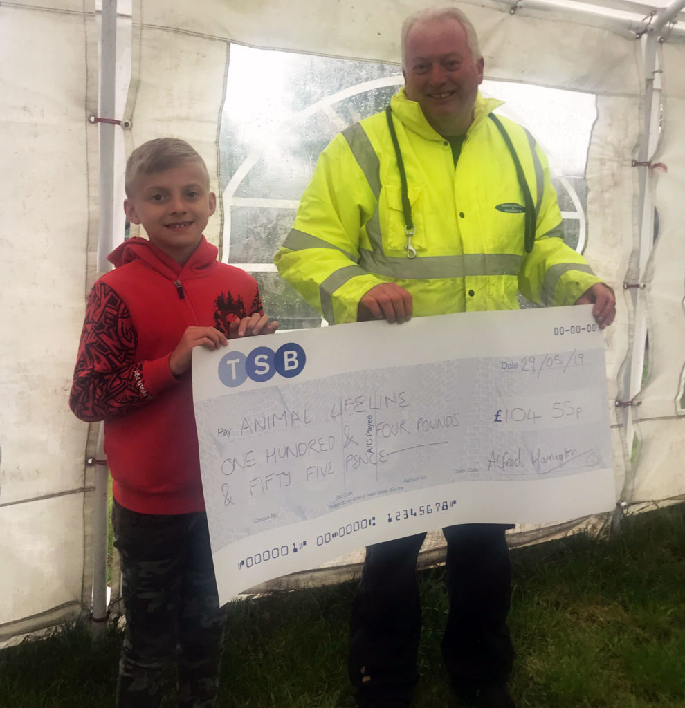 Nine year old Alfred Harrington set out this Summer to do his very best and raise funds for Animal Lifeline, his favourite local charity. To achieve his aim he ran five kilometres around the grounds of Trentham Gardens raising £104.55 for the welfare of dogs in our care. Alfred in pictured handing his well earned cheque to our Serendipity Kennels manager Steve Woodward. Many thanks Alfred and well done!