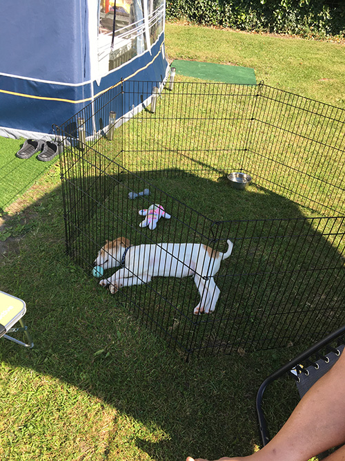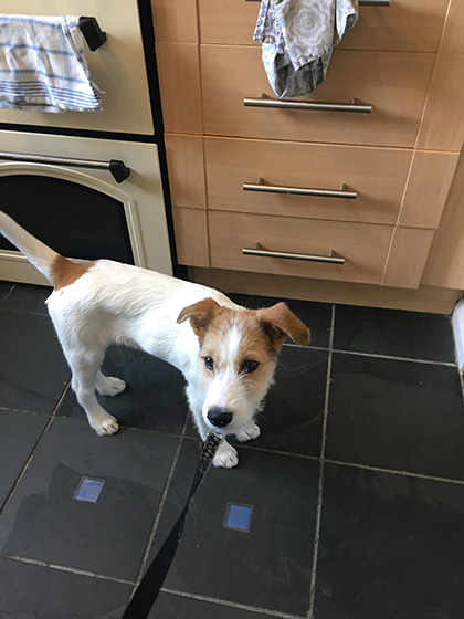 “This is spike the puppy’s first few weeks with us he’s getting on great, loving our caravan in Wales – he sleeps through all night, loves his walks, is brilliant on the lead and is very food driven, but what dog isn’t !! We have taught him to sit with hand signs and he is pretty much house-trained, just the odd accident. He’s fantastic with the kids, everybody loves him. His favourite toys are his Kong and balls he’s going to make the most amazing dog. Thank you so much Animal Lifeline.”